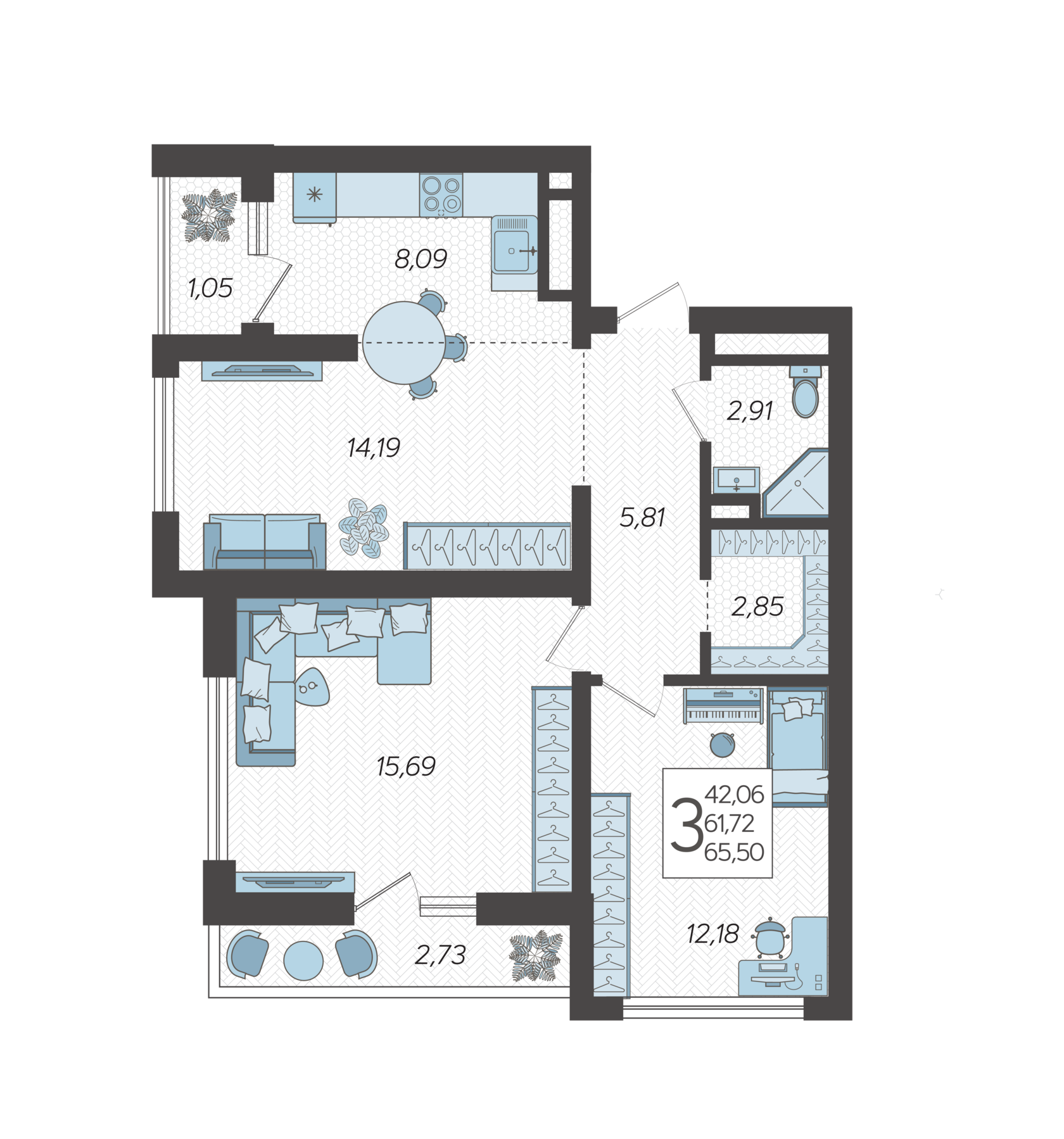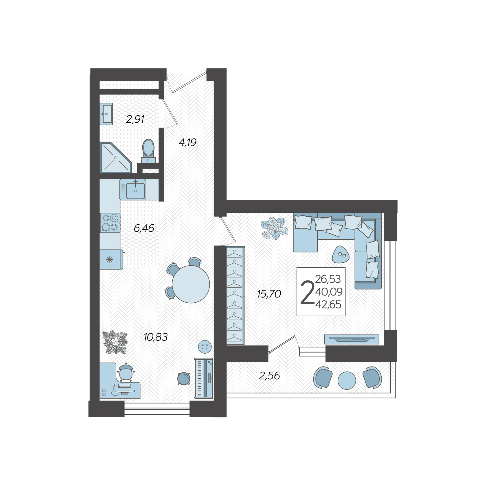 42,99м²