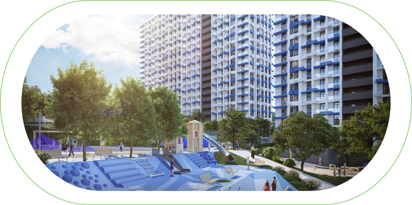 Вы выходите из дома, наполняете лег кие кислородом и отправляетесь в но вый день. Вокруг – газон под линеечку, высокие тенистые деревья, клумбы и цветники. Дети резвятся на современ ной детской площадке. Каждый день наполнен красотой, уютом и комфортом.