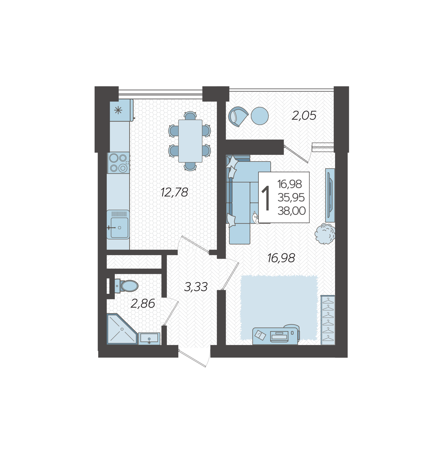38 м²