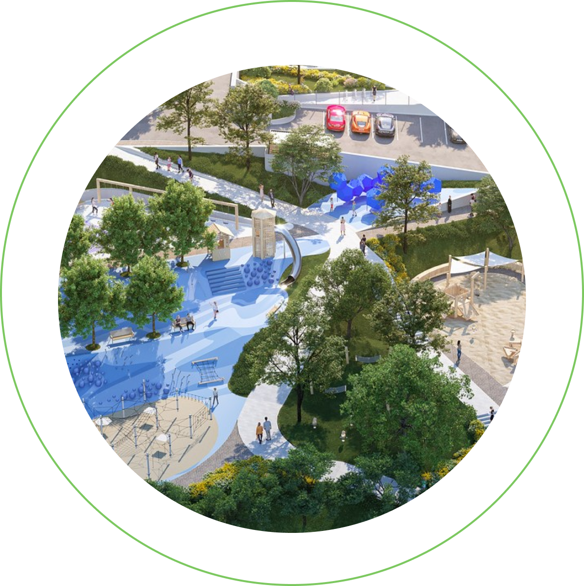 Для жителей ЖК «Кислород» будет раз работан свой уникальный проект благо устройства. Площадки для спортивных игр, тренажерные комплекты под откры тым небом, игровые площадки для детей разных возрастов из экологически чи стых материалов.ЖК «Кислород» создан не только для отдыха, но и для постоянного проживания семей в черте города.