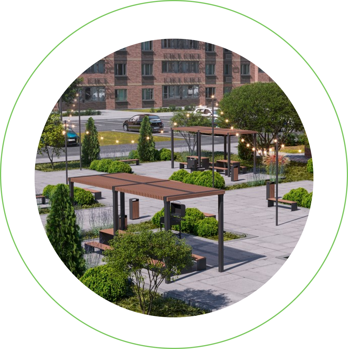 Почти 2 га территории выделено под благоустройство и озеленение.