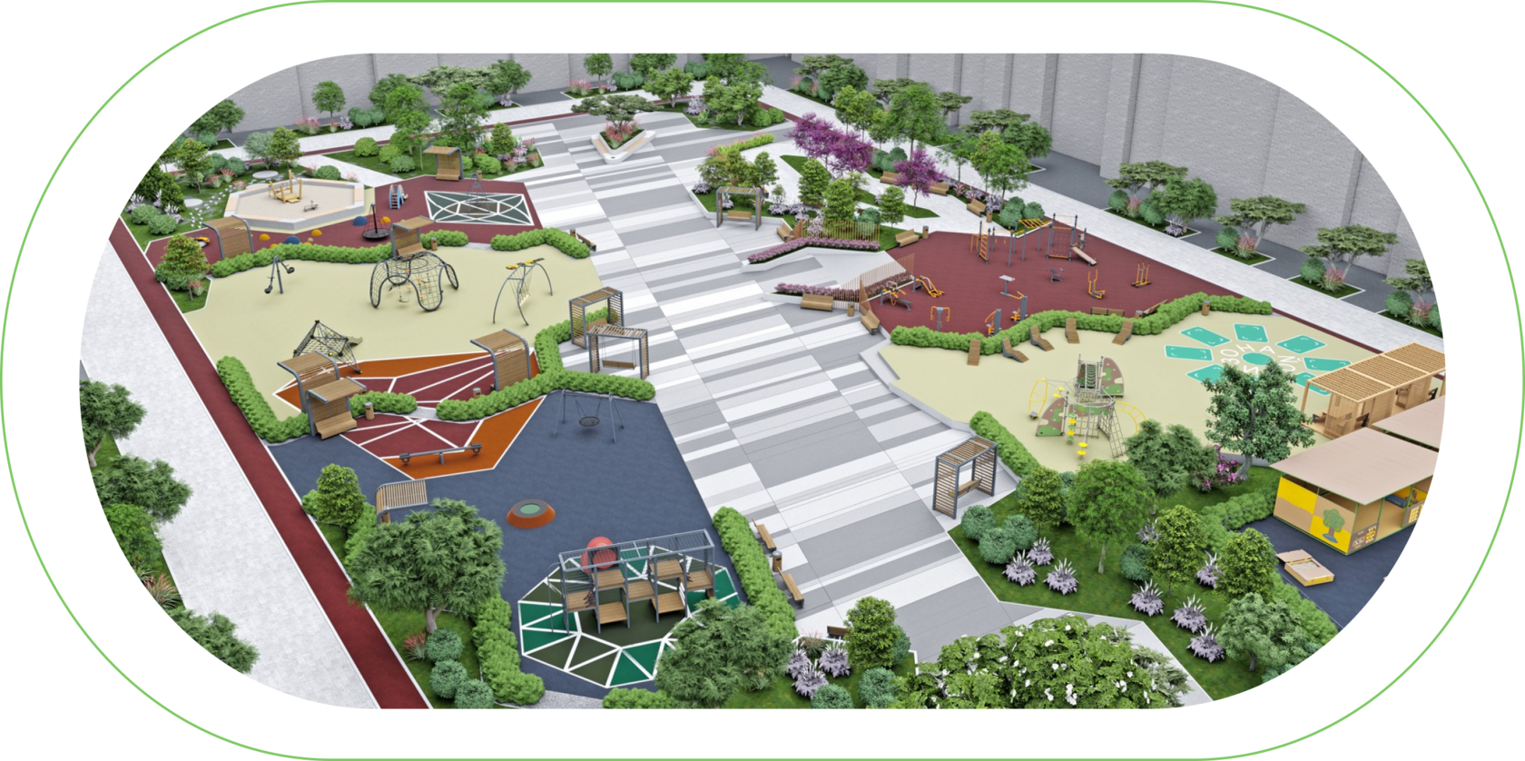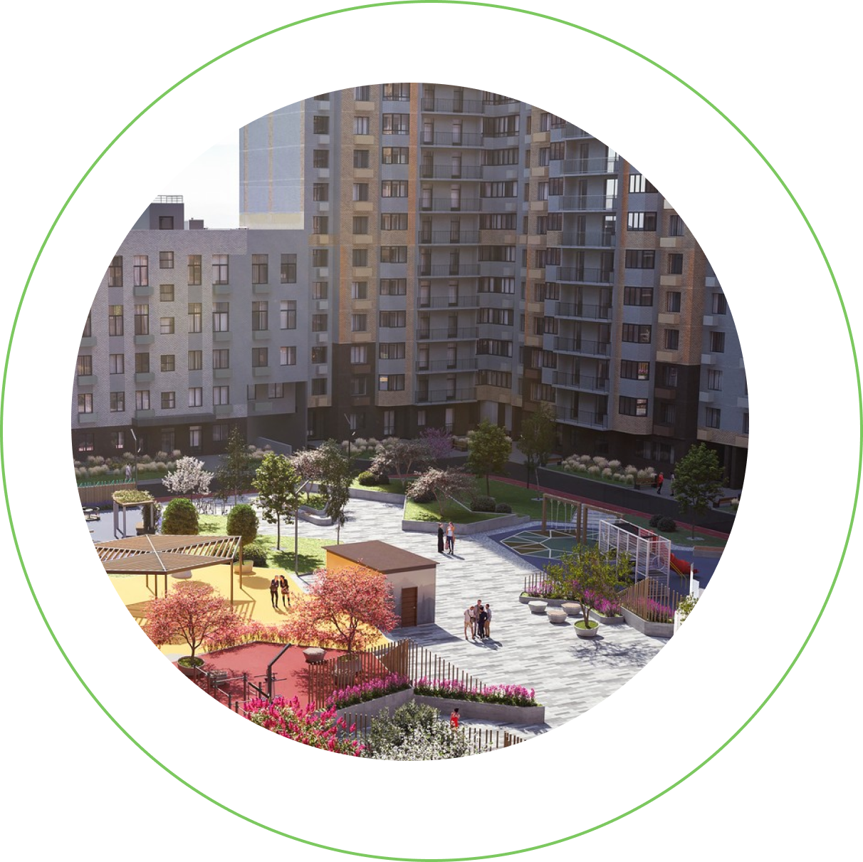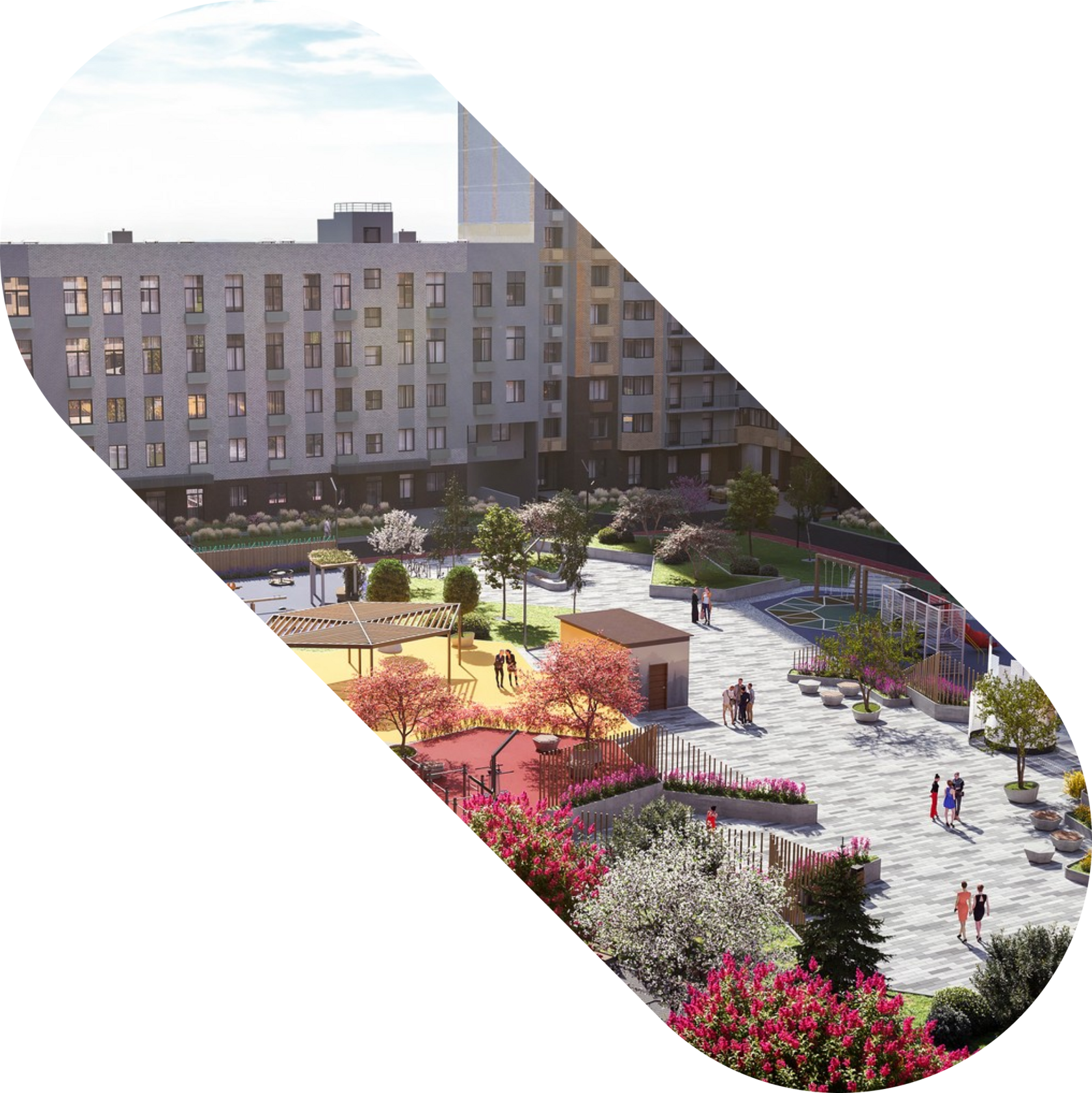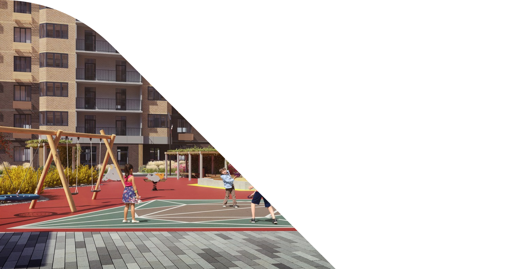 Двор понравится детям и взрослым. Жителям любых возрастов будут доступны соответствующие их интересам детские и спортивные площадки.