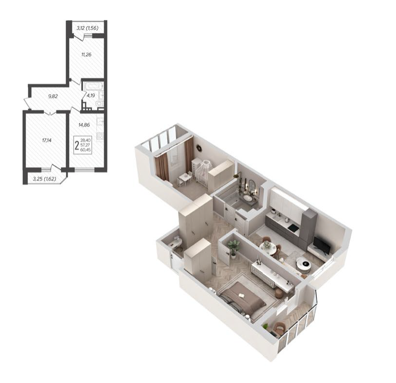 60,06 -61,7 м²
