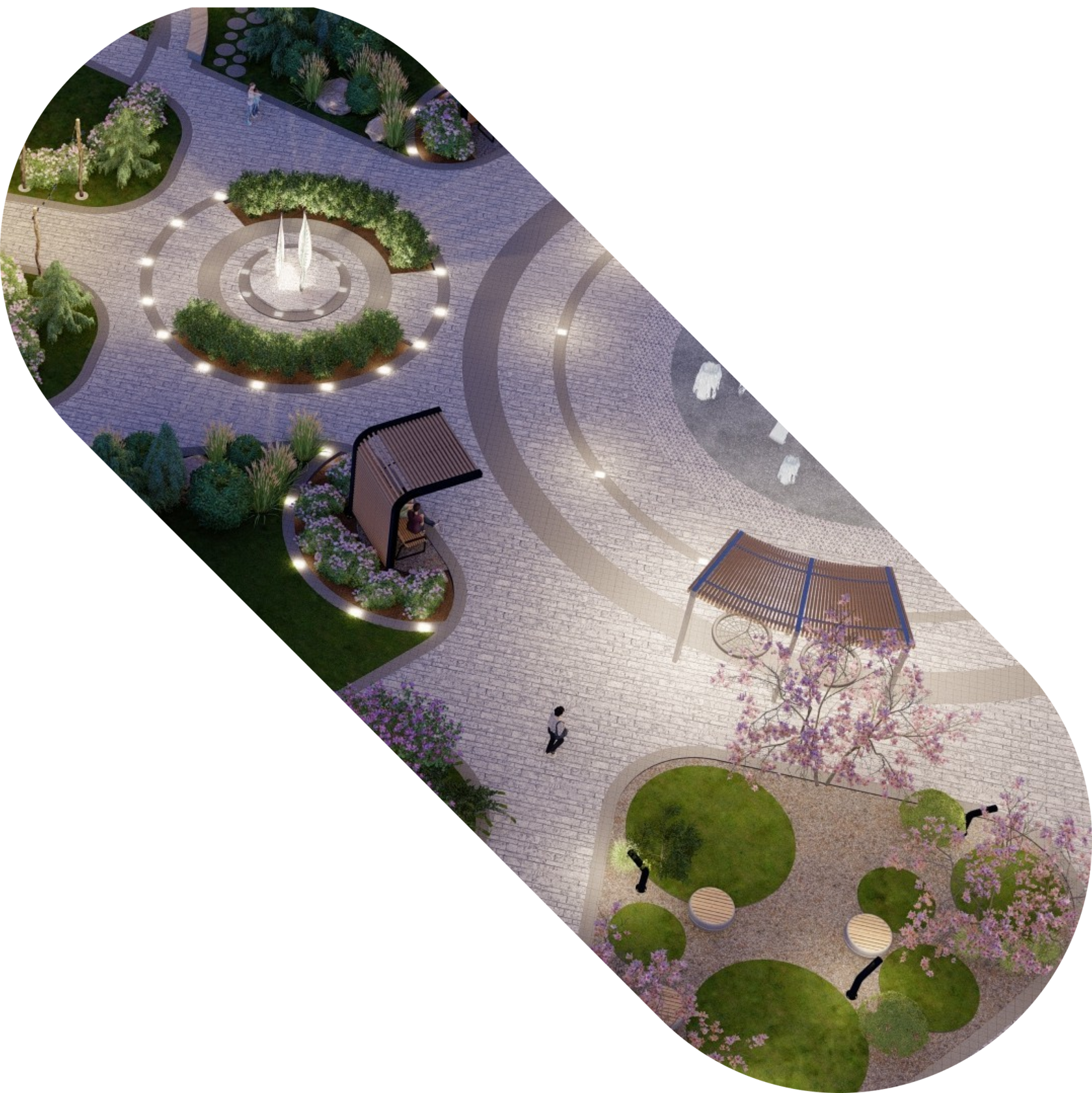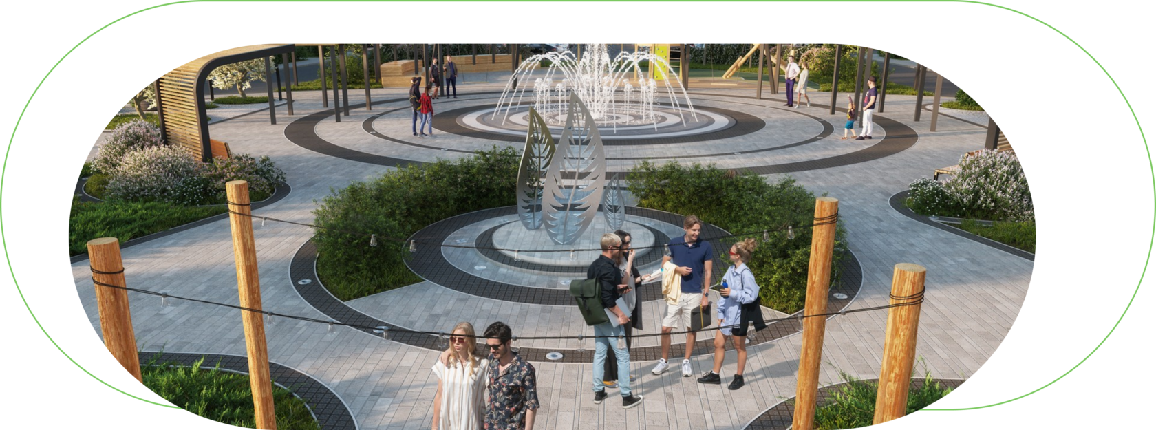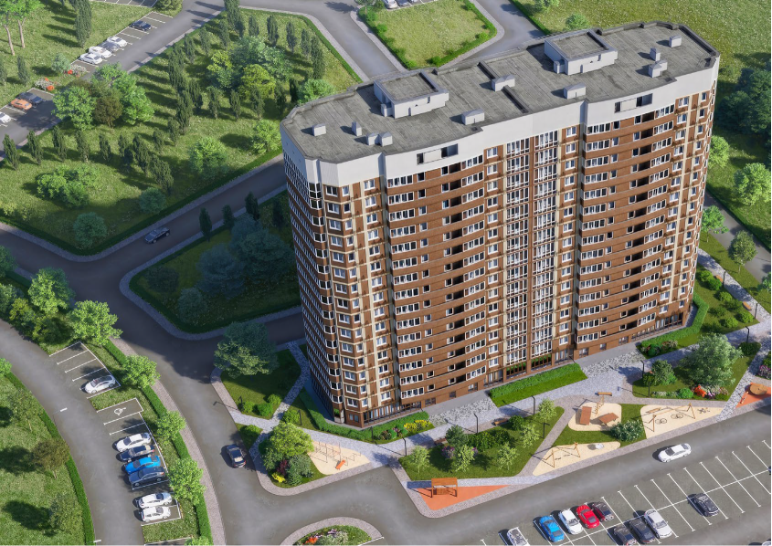 Придомовая территория Предполагает просторные дворы с качественным пышным озеленением с автоматическим поливом, безопасными детскими, спортивными площадками, зонами отдыха для людей любого возраста.